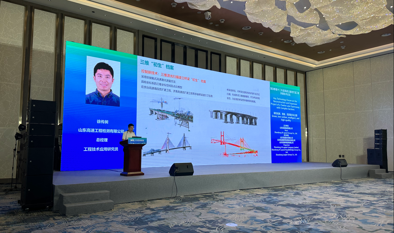 權屬單位山高檢測公司總經理徐傳昶在“復雜斷面十二車道高速公路改擴建工程論壇”,做了《檢監測技術賦能改擴建工程建設》專題匯報。